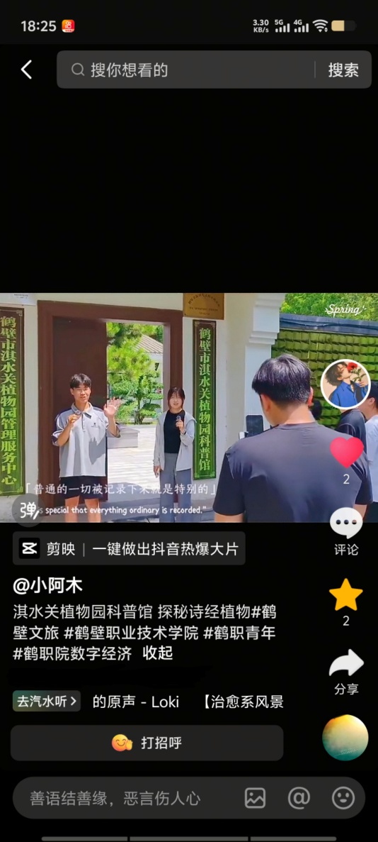 7月20日至8月14日的实践执行阶段,团队围绕“内容传播与在地赋能”双线推进,取得了丰硕成果。在内容创作方面,实践团拍摄制作的《诗经植物探秘》《汉服打卡攻略》等系列短视频在抖音、小红书、B站等平台获得良好反响。
